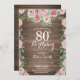 Rustikal floralrosa Peonies 80. Geburtstag Einladung für Frauen. Aquarellfarbene Blume Elegante rosa Rose und Peony Blume. Erwachsener zum Geburtstag. Rustikaler Holzhintergrund. Land Vintag Retro. 13. 15. 16. 18. 20. 21. 30. 40. 50. 60. 70. 80. 90. 100. Jedes Alter. Für weitere Anpassungen klicken Sie bitte auf die Schaltfläche "Anpassen" und verwenden Sie unser Designwerkzeug, um diese Vorlage zu ändern.