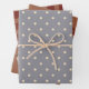 Rustikales primitives Country Homespun and Hearts Wrapping Paper Sheet Set - bietet Koordinatenpapier in einer reichen, primitiven Farbpalette. Homespun, prim Puppen mit Hüten mit Herz, und whimsical blauen Polka Punkte.