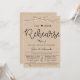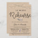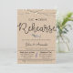 Rustikale Einladungskarte für das Hochzeitsessen der Probe mit Saitenleuchten, Kalligraphie und zartem Lavander-Blumenmuster.