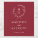 Dieses geschmackvolle und klassische Design verleiht Ihrem Hochzeitsfest oder Ihrer Verlobung ein elegantes Aussehen. Ein einfacher, offener Lorbeerkranz mit skizzierten Blätter umgibt den Monogramm-Initial der Braut und des Bräutigams. Die elegante und dennoch einfache Textvorlage ist bereit, mit den Namen der Braut und des Bräutigams und dem Hochzeitstag zu personalisieren. Dieses in rustikalem Rot gehaltene Design ist in einer Vielzahl beliebter Farbvarianten erhältlich.