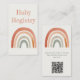Teilen Sie Ihre Baby Registry Info mit diesem hübsch rustikalen Einsatz, der eine handgemalte Terrakotta und pastellfarbenen Regenbogen in sanften Aquarelltönen enthält. Die minimalistische, moderne Gestaltung wird mit einem Vintag inspirierten Schriftart für eine unterhaltsame und freundliche Touch gepaart. Sie können den QR-Code ganz einfach scannen, um auf Ihre Registrierung zuzugreifen, was ihn perfekt für Babyduschen oder Ankündigungen macht. Die warmen Erdtöne und die natürliche Farbpalette koordinieren sich mühelos mit braunen, neutralen oder rustikalen Party-Themen und einem einladenden und stilvollen Detail, das Ihre Feier sowohl organisiert als auch unvergesslich behalte.