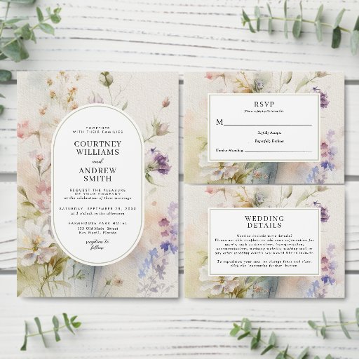 Rustikale Retro-Wildblume Hochzeitsdetails Begleitkarte