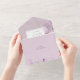 MIT ODER OHNE QR-CODE ODER ABENDESWÄHLUNGSOPTIONEN. Erhöhen Sie Ihre Hochzeitsankündigung mit unserem exquisiten lilac whispers Einladungs-Design. Eine Leinwand subtiler, bedrückter, weicher lila Sets verströmt die Bühne für Romantik, während die weiße Textbox mit einem dünnen, weichen lila Rahmen ein Element raffinierter Einfachheit hinzufügt. Der Zauber setzt sich fort mit zarten Sprays von Aquarelllilaks und sanftem, grünem Blattwerk, das die Kanten und den Rücken der Einladung anmutig umrahmt und Ihrem Fest eine Touch Naturschönheit verleiht. Diese Einladung ist die perfekte Mischung aus zeitloser Eleganz und zeitgenössischem Stil. Ihre Einladungen vermitteln nicht nur die Details Ihres besonderen Tages, sondern dienen auch als gepflegtes Medaillon. Machen Sie Ihre Hochzeit unvergesslich mit diesem faszinierenden Design, das das Wesen der Liebe und der Eleganz einfängt. Erstellt von der einfachen Farmhouse Press.