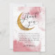 Rustikal und modern über den Mond Thema Mädchen Babydusche danke Karte mit Aquarellkunst von rosa Himmel mit Imitaten goldenen Glitzer Mond und Sterne. Die Nachricht dankt den Gästen für ihr Kommen und ihre Geschenke.