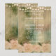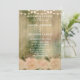 Eine elegante rustikale Hochzeitsfeier mit Holzfußboden, sanften rosa Rosen und einer Lichterkette. Diese Hochzeitseinladung ist Teil eines kompletten Set.