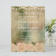 Eine elegante rustikale Hochzeit bewahrt das Datum mit Holzhintergrund, sanften rosa Rosen und einer Reihe von Lichtern. Diese Hochzeit speichern Sie das Datum ist Teil eines kompletten Set.