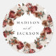 Elegante florale Hochzeitsaufkleber mit Ihren Namen, umgeben von einem Kranz mit Aquarellfarben und Blattwerk in Bordeaux-, Elfenbein-, Braun-, Gold- und Grüntönen. Die Bordeaux- und Elfenbein-Aufkleber eignen sich hervorragend für Hochzeitsfeiern, Umschlag Aufkleber und Gastgeschenke Hochzeiten. Entworfen, um mit unserer Hochzeitskollektion Rustic Burgund und Elfenbeinküste Rose zu koordinieren.