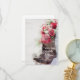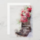 Senden Sie eine herzliche Nachricht von Dank und Anerkennung für Geschenke erhalten nach einer Ranch Thema Engagement Party, Brautparty oder Hochzeit mit den bezaubernden rustikalen Rose und Cowboy Boots Country Watercolor Hochzeitswohnung Dankeschön Note. Diese informelle Western Dankeschön-Noten sind mit einem malerischen digital Aquarell bemalten Blumenfoto aus braunen Leder Western Cowboystiefeln, einem Bouquet aus rote Rosen und weißen Blume-Blüten des Babys und einem weißen Bridalschleier aus Stallholz mit einem alten rustikalen Wagenrad und einem verwischten grünen natürlichen Hintergrund versehen.