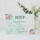 Eine reizende rustikale Hochzeitskarte mit einem blumengeschmückten, schabby-schicken Thema. Das Design besteht aus einer geblasenen, grünen Damast-Tapete mit Blumensträußen aus Rose und Hydrangeas in der gegenüberliegenden Ecke. Die Rückseite der Vorlage bietet Platz für eine Hochzeitswebsite-Adresse (falls erforderlich, wenn nicht nur löschen).