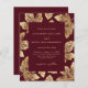 Budget Rustikale Burgunder Red and Gold Foil Blätter Hochzeit Einladung.