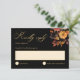 Diese elegante RSVP-Karte mit einem schwarzen Hintergrund, der mit einem handbemalten Aquarellbouquet in warmen Rost- und Orangetönen geschmückt ist, eignet sich perfekt für eine Herbst- oder Herbsthochzeit. Passen Sie die Formulierung einfach an Ihre Feier an.
