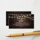 Das ist der moderne rustikale Bauernhof Braun Holz, String Lights Design, Schwarz-Script Minimalismus, Schrift-Schriftart, Hochzeitsverschlusskarte. Sie können die Schriftart-Farben ändern und Ihre Hochzeitsdetails in den entsprechenden Schriftart / Buchstaben hinzufügen. #TeeshaDerrick