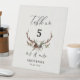 Hirsche rustikales botanisches Blattwerk mehr und mrs Tischnummer Schild Hochzeit. Elegantes gemaltes Design. Weiche, gedämpfte Farbtöne verleihen dieser Hochzeitssuite eine ruhige Eleganz.