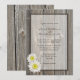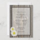 Rustikale Hochzeitseinladungen mit einem weißen Gänseblümchen entwerfen auf einem gealterten Scheunenholzhintergrund. Erhalten Sie die zusammenpassenden rustikalen Hochzeits-Antwort-Karten.