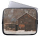 Rustikale Schneeszene und Vintage Hütte Laptopschutzhülle