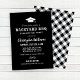 Die Party Einladung "Backyard GRILLEN" zeichnet sich durch ein Graduierungspapiermotiv, einen stylischen, auf rustikale und moderne Schriftart zugeschnittenen Text, eine Schriftrolle, karierte Musterdesigns und einen weißen Text aus. Der schwarze Hintergrund und das karierte Gingham-Tischmuster auf der Kartenrückseite können angepasst werden. Ideal für eine lässige Sommerabschlussfeier im Freien.