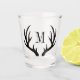 Kühne, schwarze Hirsche antlers Silhouette und monogramm Buchstabenschuss Glas. Diese sind perfekt für Ihre Trauzeugen! Mit diesen rustikalen Schuss-Gläsern verleihen Sie Ihrer Küche noch ein bisschen Bauerncharme.