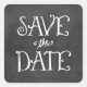 Weiße Hochzeit bewahren die Dattelaufkleber in quadratischer Form mit einem weichen rustikalen schwarzen Papphintergrund mit einem strukturierten Look und dekorativem handgeschriebenem Schriftart mit weißem Kreideaussehen. Diese funktionieren als Umschlag Aufkleber für Ihre Ankündigungen - sehen Sie sich unser Save the Date koordinierendes Kartendesign an!