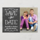 Whimsikale und einzigartige zweiseitige Foto-Ankündigungskarte speichern die Daten mit einem rustikalen strukturierten Look Blackboard Hintergrund mit handgeschriebenen Stil Schriftart, die ein weißes Kreide Aussehen. Personalisieren Sie mit den Hochzeitsdetails und ein beliebtes Porträtformat Verlobung Foto.