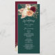 Dieses zweiseitige Hochzeitsprogramm mit rustikalen Blumen bietet romantische Aquarellfarben-Blume in Bordeaux, Pfirsich und Elfenbein über tiefgrüne und weingrüne Hintergründe. Eine perfekte Wahl für elegante Herbst- oder Hochzeitsfeiern. Passen Sie beide Seiten an, um Ihre Zeremonie-Details anzupassen. Fragen? E-Mail bpkolman@gmail.com