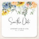 Annoncez votre grande journée en style avec ce mariage d'été rustique, sauvez le dessous de verre de la date. Doté d'un mélange dynamique de tournesols, de roses et de verdure luxuriante dans des tons chauds de saison, ce design apporte une touche fraîche et romantique à votre papeterie mariage. Parfait pour les mariages d'été et de jardin, ce dessous de verre est à la fois pratique et un charmant gardien pour vos invités.