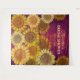 Elegante Aquarellmalerei von Sonnenblumen mit lila rustikaler Holzstruktur. Name und Datum für die Personalisierung.