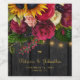 Maßgeschneiderte Hochzeitsweinetiketten mit einer rustikalen, großen gelben Sonnenblumen und roter bordeauxfarbener Rose mit Bouquet und Imitaten goldene Kalligraphie-Schrift auf einem dunkelbraunen Holzhintergrund mit Saitenbeleuchtung. Ideal für Ihren Sommer oder Herbst im eleganten rustikalen Garten im Freien Vintage traditionelle thematische Hochzeiten. Personalisieren Sie es mit den Namen der Braut und des Bräutigams und den Einzelheiten der Hochzeit!
