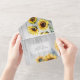 Ihr Hochzeitstag ist eine Feier der Liebe, der Freude und der Schönheit der goldenen Schätze der Natur. Diese All-in-One-Hochzeitseinladung zeigt den strahlenden Charme der Sonnenblumen auf einem rustikalen Hintergrund aus weißem Holz und schafft eine Einladung, die Wärme, Glück und lässige Eleganz verkörpert. Die All-in-One Hochzeitseinladungen sind schön und praktisch, indem sie die Hochzeitseinladung mit einer leicht zu entfernenden perforierten UAWG-Postkarte kombinieren. Sie sind auch schnell und einfach für den Versand vorbereitet. Einfach auf die Einladung richten, die Rückenklappe und das Siegel mit den beiliegenden Klarsichtstickern falten. Sobald Ihre Gäste die voradressierte Einladung erhalten, reißen sie einfach die perforierte RSVP-Karte ab und lassen sie in der E-Mail ablegen. Der QR-Code erlaubt es Ihren Gästen, einfach auf Ihre Hochzeitswebsite zuzugreifen, um Informationen zu erhalten, wie zum Beispiel Empfang und Abendessen.