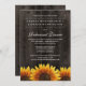 Rustikale Sonnenblumen Probe Dinner Einladungen - mit einem Stallholz Hintergrund mit rustikalen Sonnenblumen am Boden.