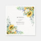 Dieses rustikale Hochzeitsnapkin-Design mit seinem hübschen bohenhaften Charme bietet farbenfrohe Aquarellsonnenblumen und weiße Rosen mit Eukalyptusgrün. Im Zentrum des Designs befindet sich eine Textvorlage, mit der man Braut und Bräutigam und Hochzeitstag personalisieren kann. Dieses Design funktioniert auch für Brautpartys und Verlobungsfeiern, die Braut und Bräutigam feiern.