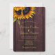 Elegante schicke Sommer- oder Hochzeit im Herbst-Einladung auf dunkelbordeauxroten Stallholz mit einem schönen Sonnenblumenstrauß und Imitaten goldenen Kalligraphie-Skript. ++++++++++++++++++++++ Die Einladung eignet sich für elegante Hochzeiten im Sommer oder Herbst.