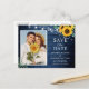 Rustikales Navy Sonnenblumen String Lights Foto Save the Date Postcard
