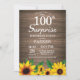 Rustikale Sonnenblumenüberraschung 100. Geburtstag Einladung
