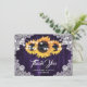 Rustikale Sonnenblumenzunge Lila Hochzeit Dankeskarte