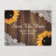 Personalisiertes rustikales Stallholz und eine Sonnenblumenhochzeit sichern das Datum der Postkarte, die mit Tinkeln, Sonnenblumen, Blume und weißem Blumengeflecht vor dem Hintergrund des Stallholzes. Dieses Template für Ihre rustikale Landhochzeit ganz einfach personalisieren oder für andere Anlässe anpassen.