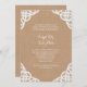 Schön illustrierte, Vintage Spitze verziert diese mittlere Leinwand farbige wedding Einladung. Es wird auf dem grundlegenden Papier gezeigt; jedoch empfehle ich das Gewicht und die Beschaffenheit des Leinenpapiers, um weiter zu erhöhen dass Leinwandfühlen. Anmerkung: Spitze ist eine Illustration.
