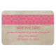 Einfache und elegante Rustic Lace Save the Date Premium Flexi Magnet mit einem Vintag strukturierten Papierhintergrund und einem süßen und tönigen Spitzen-Rahmen in magenta. Einfach anpassen, einfach Ihre Hochzeitsdetails hinzufügen. Klicken Sie auf "Anpassen", um weitere Personalisierungsoptionen zu erhalten.