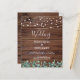 Freuen Sie sich auf Ihre Hochzeit mit eleganten und rustikalen Holzmöbeln mit Lichtern und Eukalyptusgrün. Diese einzigartigen rustikalen Grödner Hochzeitsfeierlichkeiten bieten elegante weiße Saitenleuchten auf Stallholz mit botanischem Grün. Personalisieren Sie diese rustikalen Hochzeitseinladungen mit Namen, Hochzeitsdatum und Ort. Sehen Sie sich unsere Hochzeitskollektion an, um Einladungen, Hochzeitsalben, Gastbücher, Party-Geschenke und vieles mehr zu erhalten! COPYRIGHT © 2020 Judy Burrows, Black Dog Art - Alle Rechte vorbehalten. Rustikale Streichellichtblüte Hochzeitsinvit