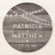Rustikale String Lights-Gastgeschenk Hochzeit Runder Pappuntersetzer