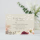 Diese RSVP-Karte bietet eine moderne Mischung aus Land und Boho-Stil, Set vor einem Hintergrund von rustikal verbrannten Orange- und Bordeaux-Blumen. Delikate Saitenlichter sorgen für eine Touch von Weisheit, während einfache Kalligraphie-Skripte ein elegantes und einladendes Aussehen gewährleisten. Es spiegelt perfekt die einzigartige Mischung aus Eleganz und Charme Ihrer Hochzeit wider.