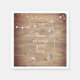 Eine rustikale Papierserviette mit Saitenbeleuchtung über einem Vintagen Maurerkirsch, gefüllt mit Ihrer personalisierten Botschaft und verstreut zarte Wildblumen auf einem natürlichen, verwitterten Holzpaneelhintergrund. Ideal für Hochzeiten, Brautpartys, Babyduschen, Taufen, Verlobungsfeiern, Jubiläumsfeiern, Abschlüsse, Geburtstagsfeiern und andere Veranstaltungen das ganze Jahr über! Entwickelt von Thisisnotme©
