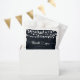 Diese rustikalen Saitenleuchten bedanken sich bei den Gastgeschenk Hochzeiten-Taschen für eine moderne Hochzeit. Das Design zeichnet sich durch schöne handbemalte Saitenleuchten in dunkelblauem Hintergrund aus. Passen Sie die Leckerei-Taschen mit einer kurzen Dankesnachricht an, einschließlich Ihrer Namen und des Datums. Nutzen Sie diese Leckerei-Taschen, um einen Hochzeitsempfang, Brautparty, jede Veranstaltung oder Party zu ergänzen. Das einfache und elegante Design zeichnet sich durch klassische und extravagante Schriftzeichen in Schwarz und Weiß aus.