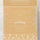 Diese rustikale Streichellichter kalligrafisch gelbe Hochzeit in einer Einladung ist perfekt für eine moderne Hochzeit. Das Design zeichnet sich durch schöne handbemalte Saitenleuchten mit prächtigen Sternen in einem gelben Hintergrund aus. Rett Papier, indem mehr Details in die Einladung aufgenommen werden anstatt auf einer separaten Gehäusekarte.