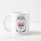 Rustikale Tasse mit ländlicher Chic-Mason mit Name oder Monogramm. Niedliches Vintages Design mit verblasstem Herzsymbol der Liebe. Elegante Hochzeitsdekoration oder Geschenk für frisch gezapftes Paar. Personalisieren Sie sich mit dem Namen der Braut und des Bräutigams, der Braut etc. Gewitterte Liebe im Glaskar.