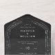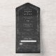 Alles in einer dreiteiligen Hochzeitseinladung mit einem rustikalen schwarzen Kalkbard mit handgezeichnetem Bogenrahmen. Hochzeitseinladung, rsvp Karte und Umschlag Kombination.