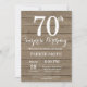 Rustikale Überraschung 70. Geburtstag Einladung. Rustikaler Holzhintergrund. Vintager Retro Geburtstag. Erwachsener zum Geburtstag. Männer oder Frauen laden ein. 13. 15. 16. 18. 20. 21. 30. 40. 50. 60. 70. 80. 90. 100. Jedes Alter. Für weitere Anpassungen klicken Sie bitte auf die Schaltfläche "Anpassen" und verwenden Sie unser Designwerkzeug, um diese Vorlage zu ändern.