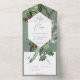 AUCH MIT EINEM QR-CODE, DER IM UAWG BEREICH AUSGEWÄHLT WERDEN KANN, ODER OHNE AUSWAHL DES ABENDS. Dieses einladende Hochzeitsdesign besticht durch einen wunderschönen Rahmen aus Winterkiefer, Heiligenbäumen, Eukalyptus und anderen Grünpflanzen mit roten, heiligen Beeren. Der Hintergrund ist ein weiches Salbei, das von Weiß beklebt ist. Erstellt von der einfachen Farmhouse Press.