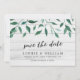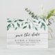 Diese rustikale Save the Date-Karte zeigt den italienischen Ruscus mit den Worten "Save the Date" in trendiger Schrift, alles vor einem hellen Holzhintergrund auf der Vorderseite und einem dunkelgrünen auf der Rückseite. Personalisieren Sie diese Karte, indem Sie den Platzhaltertext in der Vorlage ersetzen, um Ihre Informationen hinzuzufügen. Für weitere Optionen, wie zum Beispiel den Schriftart zu ändern und ihn zu vergrößern oder zu verändern, klicken Sie auf den Button "Anpassen". *Bitte beachten Sie, dass das Zazzle-Wasserzeichen, das in der Zoomvorschau angezeigt wird, NICHT auf dem gedruckten Endprodukt erscheint. © Rosewood and Citrus