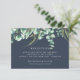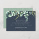 Unsere botanischen Eukalyptus-Empfang-Eintrittskarten auf Mitternachtsblau stimmen sich mit unserer Botanischen Eukalyptus Wedding Invitations Collection ab. Ein Spray aus Aquarelleukalyptus-Blätter und botanischem grünem Blattwerk runden das Design dieser Empfang-Informationskarte ab. Mit den Details Ihrer Hochzeitsfeier können Sie ganz einfach Ihre Wünsche erfüllen.