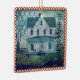 Groß, historisch, Plantage, rustikales Land, weiß gestrichen, Zuhause. "Zuhause Sweet Zuhause", rechts handschriftlich. Altes, antikes Overlay für die Handschrift. Rot-weiße Schachbrettlinie. Rustikaler Grunge-Stil mit Vintager Handschrift und einem Teil des Hühnerdrahtes überlagert oben in der links Ecke.